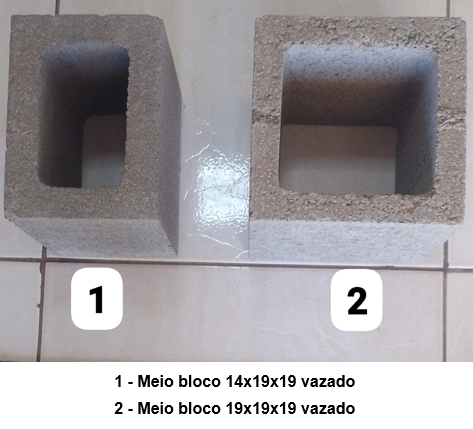 | Vedação | Meio Bloco | 14x19x20 |